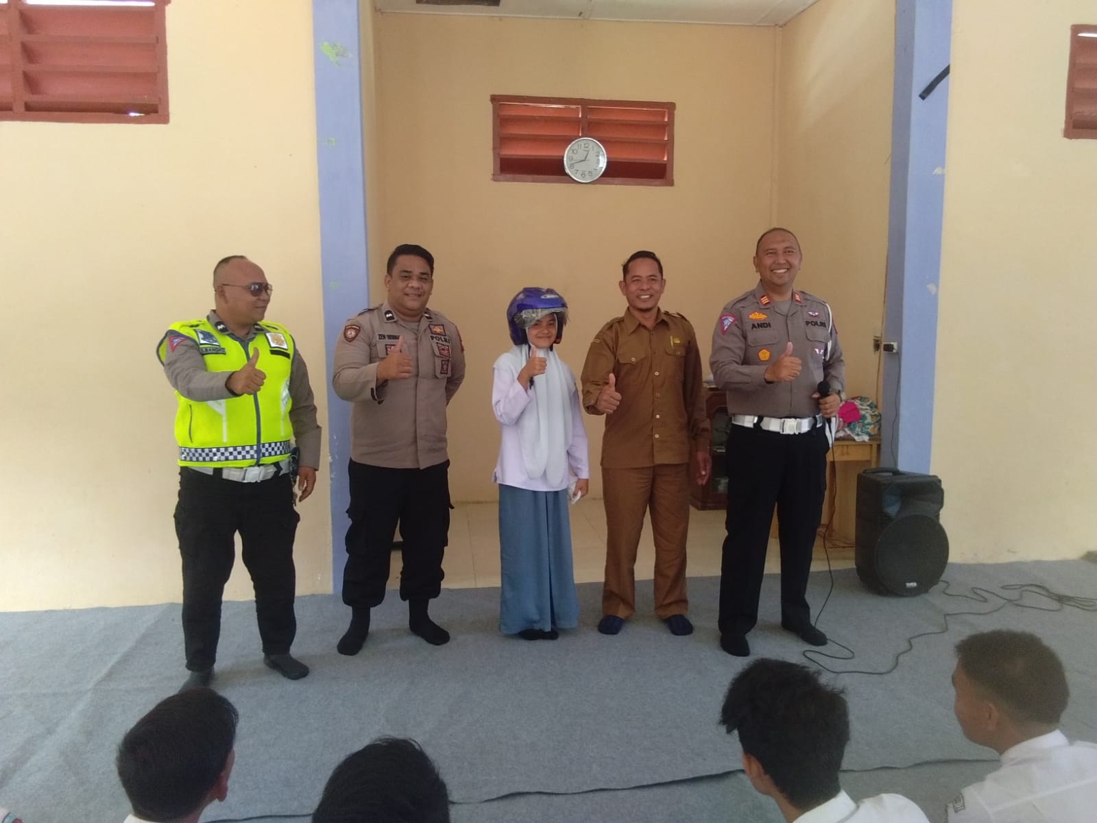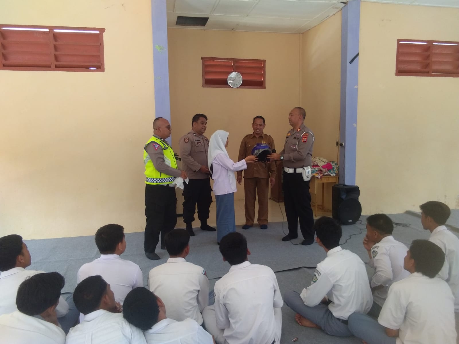 Dan Memberikan Helm kepada salah satu Siswi Duta Kamtibmas sebagai Pelopor Keselamatan Berlalulintas.