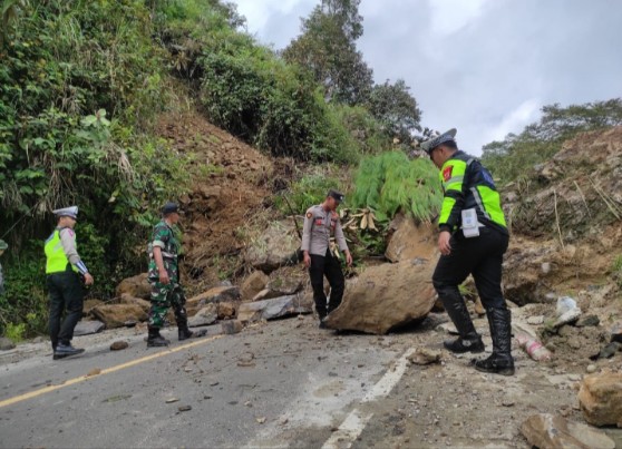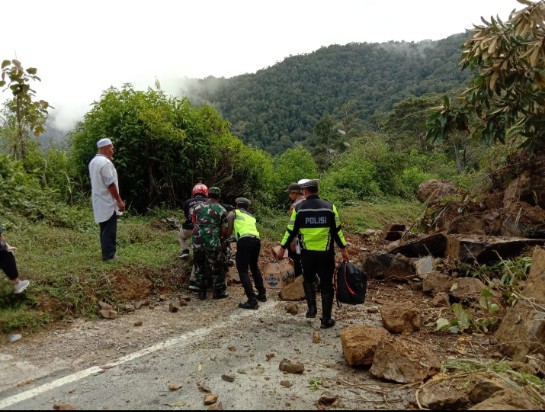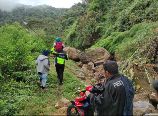 Untuk itu Personel Pospampol Pantan Cuaca dan Kaurbinops Satlantas bersama Koramil bersinergi untuk mengatasi longsor yang terjadi di Desa Ise – Ise mengakibatkan jalan putus total saat ini.