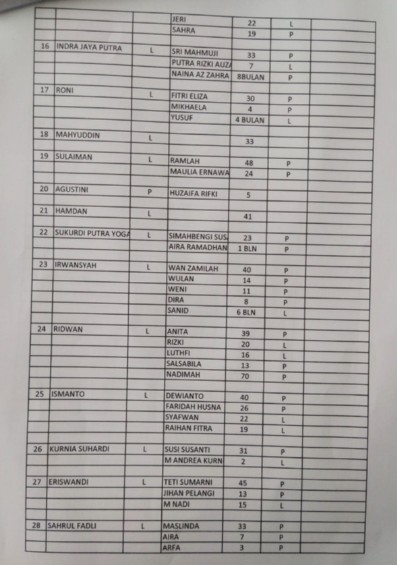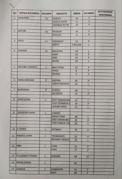 Berikut Nama – nama Pemilik Rumah yang hagus terbakar pada malam Rabu kemaren yang tertera di atas. (Mus)