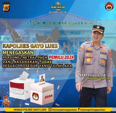 Dalam menyikapi hal ini Kapolres Gayo Lues AKBP Efrianza melalui Kasihumas AKP Zulfikar SH, Selasa (16/05/2023) mengatakan, dalam menyambut pesta demokrasi yang akan di laksanakan pada tahun 2024 ini bahwa seluruh personel Polres Gayo Lues harus selalu bersikap adil dan netral Dalam menjalankan tugas dengan prosedur yang telah ada, dan berharap semoga pesta demokrasi yang akan di laksanakan ini dapat berjalan dengan baik dan lancar.