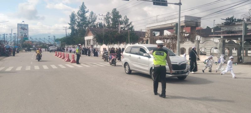 Gayo Lues – Personel Satuan Lalu Lintas (Satlantas) Polres Gayo Lues melakukan patroli dan pengamanan dalam rangka pelaksanaan Aksi Pawai Solidaritas Palestina yang diselenggarakan oleh Peserta Didik dan Guru Pengajar Perguruan Bunayya yang bertempat di Seputaran Kota Blangkejeren dan berakhir di Masjid Raya Ash-Shlihin Gayo Lues, Minggu (5/11/2023).