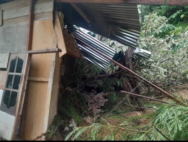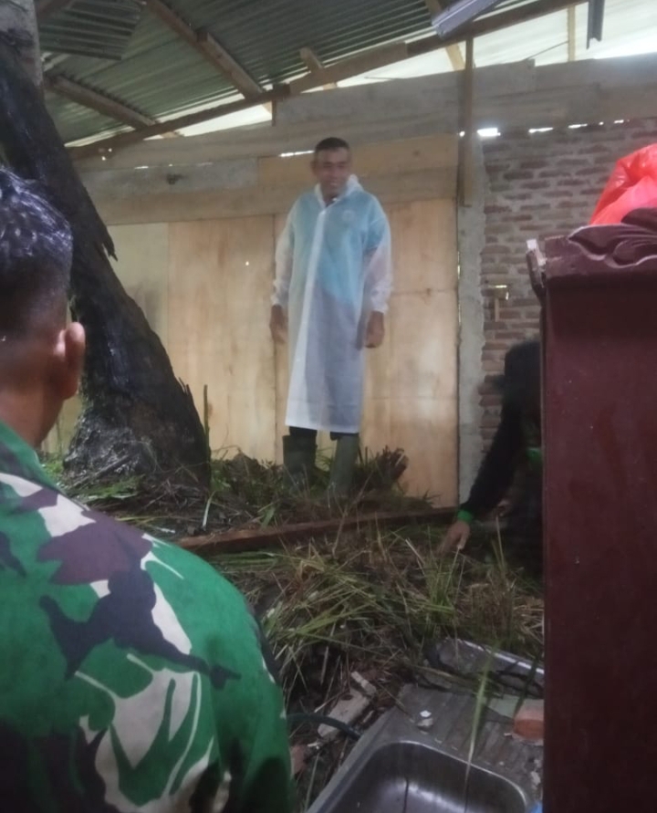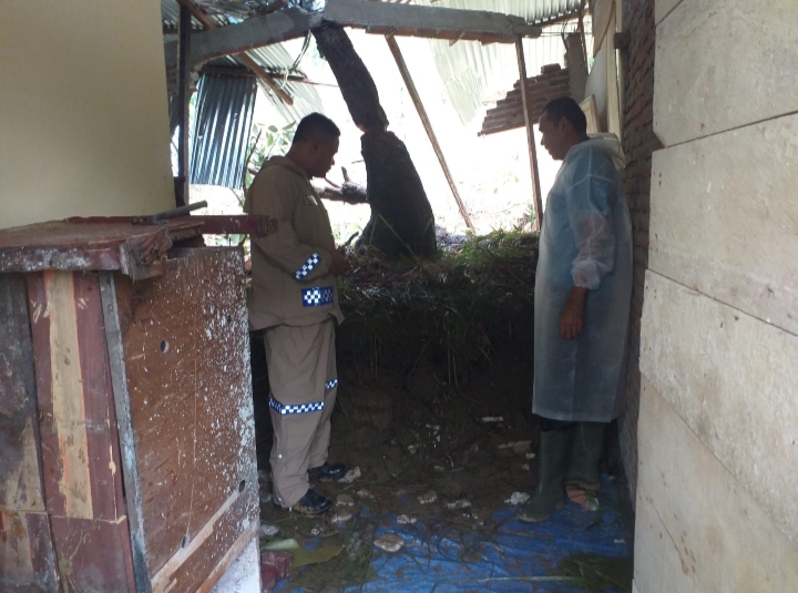 “Akibat kejadian ini, atap belakang rumah hancur, tembok belakang roboh dan sebagian peralatan rumah tangga rusak. Kerugian diperkirakan Rp15 juta,” ujarnya.