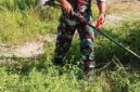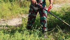 ‎Kompak Bersama Babinsa, Warga Penyaring Bersihkan Lapangan Sepak Bola