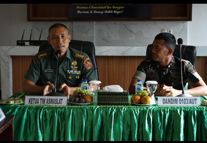 Sementara Dandim 0103/Aceh Utara Letkol Kav Makhyar S.T.,M.M.,M.H.I., mengucapkan selamat datang kepada Tim Aswaslat Kodiklat TNI AD di Makodim 0103/Aceh Utara. Di penyampaianya, bahwa kegiatan kunjungan ini memiliki arti penting dan nilai manfaat yang besar dalam meningkatkan kinerja organisasi.