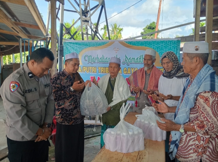 Gayo Lues – Dalam rangka menyambut bulan suci Ramadhan, Putra/Putri Tribrata Gayo Lues (PPTGL) melakukan kegiatan pembagian takjil kepada jama’ah suluk di Desa Rerebe, Kecamatan Dabun Gelang, Kabupaten Gayo Lues. Kegiatan tersebut dilakukan dengan kerjasama antara PPTGL dan pihak kepolisian setempat yang diwakili oleh Kapolres Gayo Lues, AKBP Setiyawan Eko Prasetiya, S.H., S.I.K., Minggu, 31 Maret 2024.