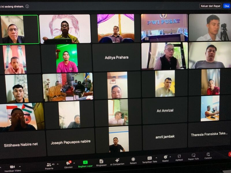 Jakarta – Sebanyak 60 peserta berasal dari Provinsi Papua Tengah dan di Riau yang bakal mengikuti ujian kompetensi wartawan (UKW) fasilitas PWI Pusat di dua daerah tersebut begitu antusias mengikuti pelatihan jurnalistik atau pra UKW yang digelar melalui Zoom meeting, Senin (15/4).
