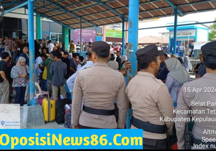 Meranti – Personil Pos Pelayanan Pelabuhan Tanjung Harapan melaksanakan giat Operasi Ketupat Lancang Kuning 2024 dalam rangka Pelayanan Operasi Ketupat Lancang Kuning 2024 di Pelabuhan Terminal Tanjung Harapan Kecamatan Tebing Tinggi. Senin (15/04/2024).