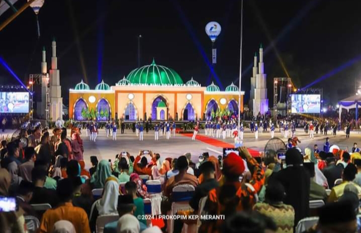 DUMAI – Pelaksana tugas (Plt) Bupati Kepulauan Meranti AKBP (Purn) H. Asmar beserta istri Hj. Ismiatun menghadiri pembukaan Musabaqah Tilawatil Qur’an (MTQ) ke-42 tingkat Provinsi Riau, di Lapangan Taman Bukit Gelanggang Kota Dumai, Minggu (21/4/2024) malam.