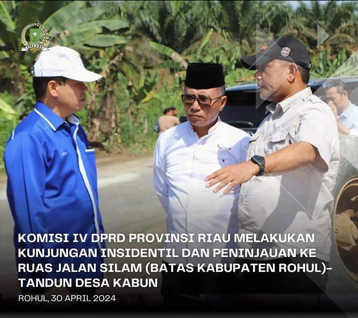 Provinsi Riau – Komisi IV DPRD Provinsi Riau melakukan kunjungan insidentil dan melakukan peninjauan ke ruas Jalan Silam (batas Kabupaten Rohul) – Tandun Desa Kabun, Selasa (30/4/2024).