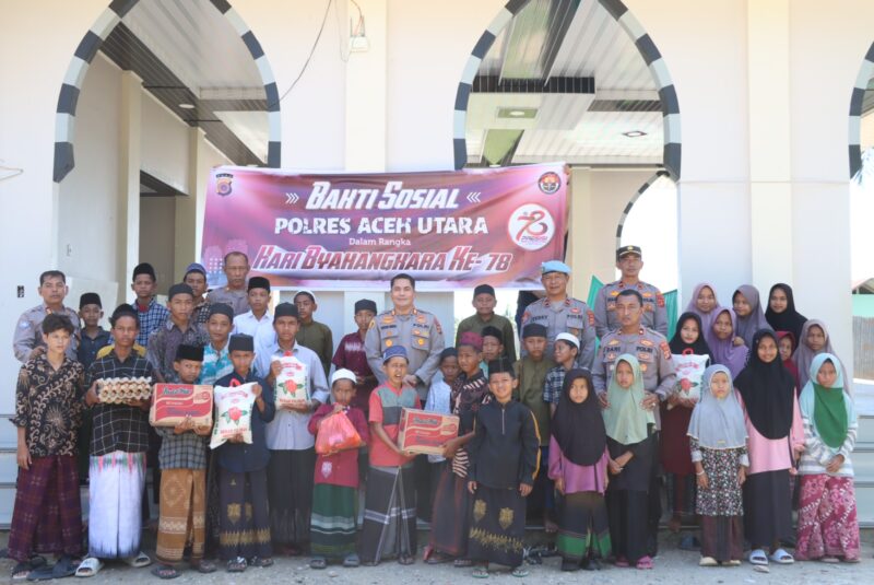 Aceh Utara – Dalam rangka memperingati Hari Bhayangkara ke-78, Kapolres Aceh Utara AKBP Deden Heksaputera S, S.I.K. melaksanakan kegiatan bakti sosial berupa pemberian sembako di beberapa dayah wilayah hukum Polres Aceh Utara. Kamis, (13/6/2024)