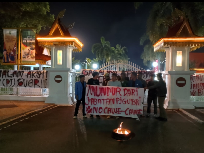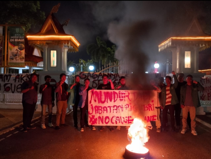 Nusantara Riau menggelar aksi di depan Rumah Dinas Gubernur Riau pada malam hari ini. Mereka mendesak agar PJ Gubernur segera mengundurkan diri karena dianggap tidak netral dan sudah tidak pantas memimpin, Sabtu (15/06/2024).