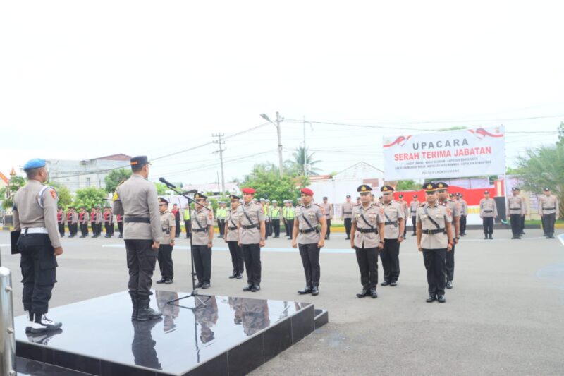 LHOKSEUMAWE – Kapolres Lhokseumawe, AKBP HENKI ISMANTO, S.I.K memimpin Upacara serah terima jabatan Kasat Lantas, Kasat Reskrim, serta empat Kapolsek di lingkungan Kepolisian Resort (Polres) Lhokseumawe, yang dilaksanakan dilapagan Apel Satya Haprabu Polres Lhokseumawe, acara ini diadakan sebagai bagian dari rotasi dan mutasi jabatan guna memperkuat kinerja dan pelayanan kepolisian di wilayah hukum Polres Lhokseumawe Kamis. 20 / 06 / 2024 .pagi .