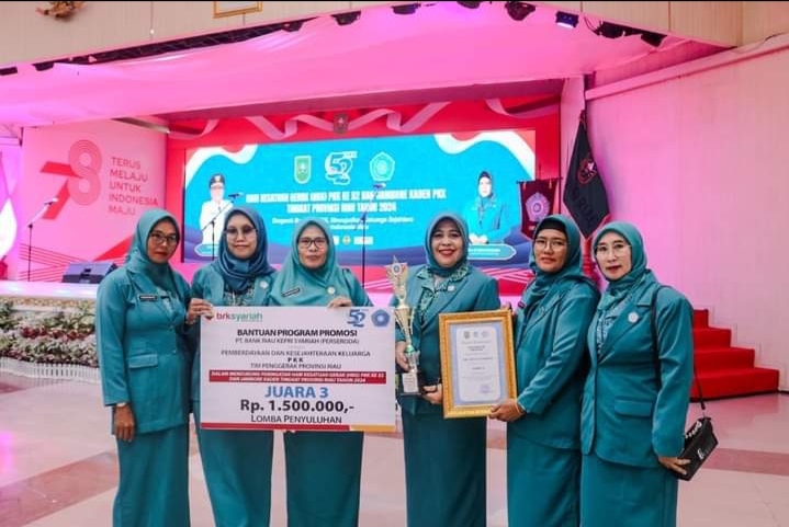 PEKANBARU – Tim Penggerak Pemberdayaan dan Kesejahteraan Keluarga (TP-PKK) Kabupaten Kepulauan Meranti berhasil meraih juara 3 lomba penyuluhan dalam rangka Hari Kesatuan Gerak (HKG) PKK ke-52 dan Jambore.