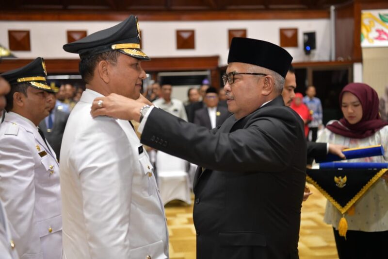 Gayo Lues – Penjabat (Pj) Gubernur Aceh Bustami Hamzah, atas nama Presiden RI, mengambil Sumpah Jabatan dan melantik Jata,SE sebagai Pj Bupati Gayo Lues, di Anjong Mon Mata Komplek Meuligoe Gubernur Aceh, Kamis (18/7/2024) sore.