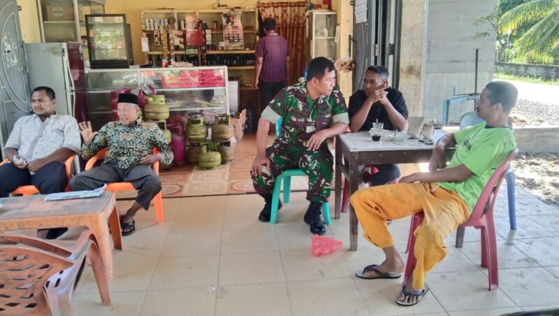 ACEH UTARA – Manfaatkan Warung Kopi, Babinsa Koramil 10/Tanah Luas Kodim 0103/Aceh Utara Sertu Edi Sutrisno melaksanakan kegiatan Komunikasi Sosial (Komsos) dengan masyarakat warga binaan, bertempat di Warung Kopi di Desa Keude Blang Jrun Kecamatan Tanah Luas, Kabupaten Aceh Utara, Sabtu (10/08/2024).