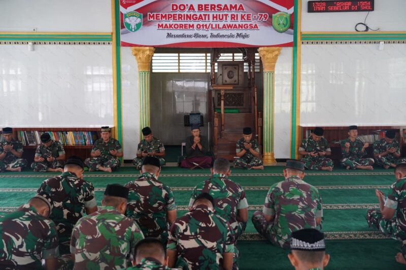 Dandim hadiri Doa Bersama Dalam Peringatan HUT RI Ke 79 Di Mesjid Al Fitrah Korem 011/Lilawangsa