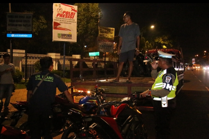 Dengan melakukan penilangan terhadap 181 Unit Kendaraan yang tidak menggunakan knalpot sesuai spesifikasi teknis, tidak menggunakan TNKB dan tidak dilengkapi surat-surat kendaraan.