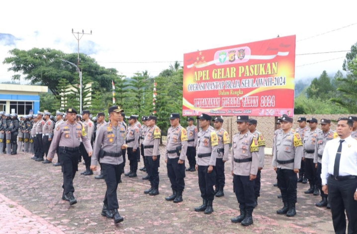 Gayo Lues – Dalam rangka mempersiapkan pengamanan Pilkada Serentak 2024, Kapolres Gayo Lues AKBP Setiyawan Eko Prasetiya, S.H., S.I.K., memimpin Apel Gelar Pasukan Operasi Mantap Praja Seulawah 2024 yang bertempat di Lapangan Apel Polres Gayo Lues, Apel yang dilaksanakan di wilayah hukum Polres Gayo Lues ini merupakan bagian dari upaya memastikan penyelenggaraan Pilkada berjalan dengan aman, sejuk, dan lancar. Senin, 26 Agustus 2024.