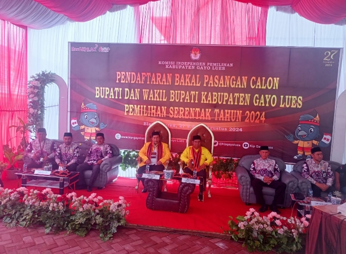 Gayo Lues – Pasangan Calon Bupati dan Wakil Bupati Gayo Lues, Gayo Lues Said Sani – Saini ( Gaesss) yang didukung dari Partai Golongan Karya (Golkar), Partai Persatuan Pembangunan (PPP), Partai Gelora. Resmi mendaftar ke Komisi Independen Pemilih (KIP) Kabupaten Gayo Lues dengan dikawal Ribuan Pendukungnya, Rabu (28/08/2024).