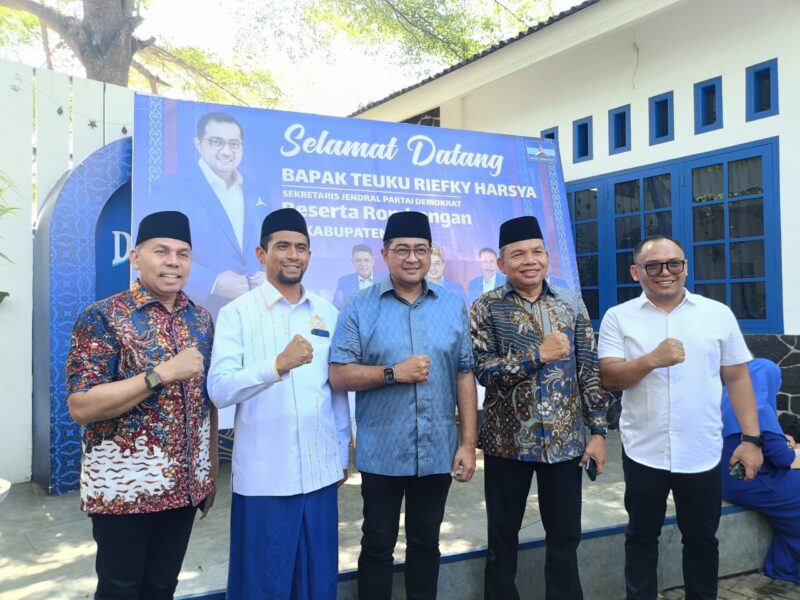 Sigli – Sekretaris Jenderal Dewan Pimpinan Pusat (DPP) Partai Demokrat sekaligus Menteri Ekonomi Kreatif Republik Indonesia Kabinet Merah Putih, Teuku Riefky Harsya lakukan lawatan diskusi dan silaturrahmi bersama kader dan pengurus Dewan Pimpinan Cabang (DPC) Partai Demokrat Kabupaten Pidie di Dhea Cafee Lampeudeu Tunong Kota Sigli, Sabtu (16-11-2024).
