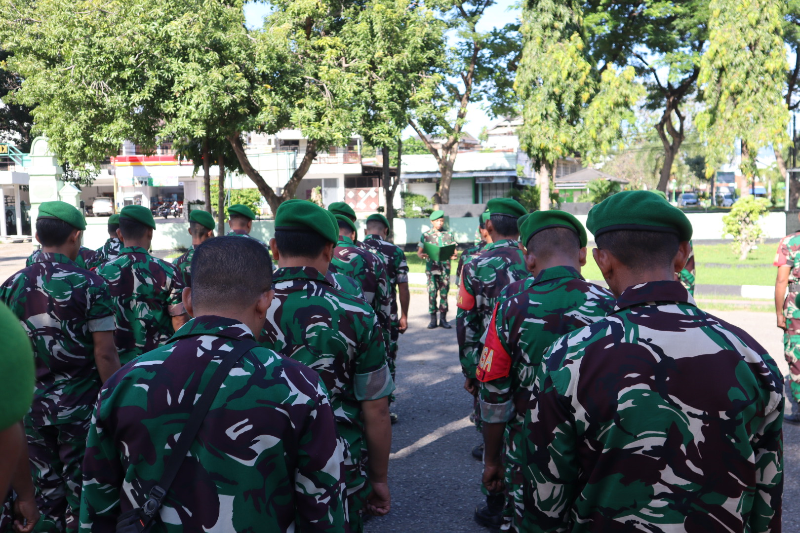 OposisiNews86 NTB – Sumbawa Besar, Kasdim 1607/Sumbawa, Mayor Inf Dahlan, S.Sos., memimpin apel pengecekan anggota yang telah selesai melaksanakan cuti bersama Hari Raya Idul Fitri gelombang pertama serta melepas anggota yang akan menjalani cuti bersama gelombang kedua. Kegiatan ini berlangsung di Makodim 1607/Sumbawa pada Rabu (02/04/2025).
