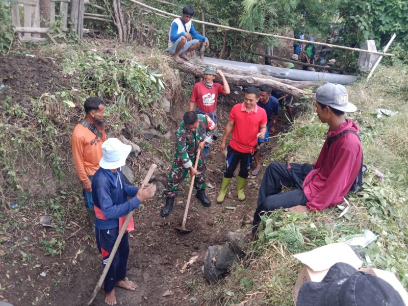 NTB – Sumbawa, Dalam rangka menyambut musim tanam ke II, Babinsa Desa Maronge, Serda Najamuddin, anggota Koramil 1607-02/Empang bersama anggota Perkumpulan Petani Pemakai Air (P3A) Unter Lupi Desa Maronge, Kecamatan Maronge, Kabupaten Sumbawa, menggelar kegiatan gotong royong pembersihan saluran irigasi, Sabtu (24/5/2025).
