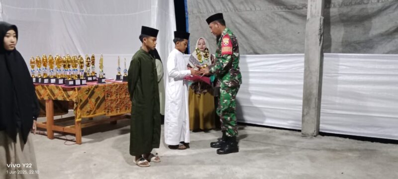 NTB – Sumbawa, Babinsa Desa Emang Lestari Serda Nurhadi, Koramil 1607-07/Lunyuk, turut menghadiri acara penutupan Musabaqah Tilawatil Qur’an (MTQ) ke-X tingkat Desa Emang Lestari yang digelar di Aula Pertemuan Dusun Liang Bagek, Kecamatan Lunyuk, Kabupaten Sumbawa, pada Rabu malam (4/6/2025).
