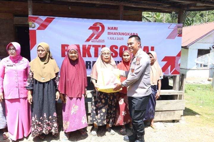 Uyem Beriring/Gayo Lues – Dalam semangat Hari Bhayangkara ke-79, Polres Gayo Lues menggelar bakti sosial yang menyentuh langsung masyarakat. Pada Senin, 23 Juni 2025, sekitar pukul 12.00 WIB, bantuan sembako disalurkan kepada warga Desa Uyem Beriring, Kecamatan Tripe Jaya, Kabupaten Gayo Lues.