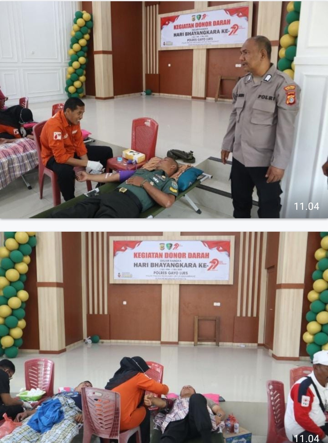 Gayo Lues – Dalam semarak peringatan Hari Bhayangkara ke-79 tahun 2025, Polres Gayo Lues menunjukkan dedikasi kemanusiaannya dengan sukses menggelar Bakti Kesehatan Donor Darah.