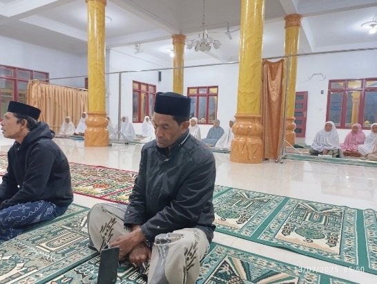 Seusai menunaikan salat, suasana hening dan penuh perhatian menyelimuti masjid saat para jemaah mendengarkan kuliah Subuh yang disampaikan oleh Tengku A. Khair Assadani S.Ag.