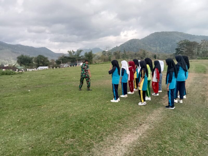 NTB — Sumbawa, Dalam rangka mempersiapkan Pasukan Pengibar Bendera (Paskibraka) jelang peringatan HUT Kemerdekaan RI ke-80, Danpos Orong Telu Sertu Hasan bersama Babinsa Desa Kelawis Sertu Alwi yang merupakan anggota Koramil 1607-03/Ropang melaksanakan kegiatan pelatihan Paskibraka sekaligus memberikan materi wawasan kebangsaan dan kenegaraan kepada siswa-siswi SMAN 1 Orong Telu. Selasa (15/07/2025).