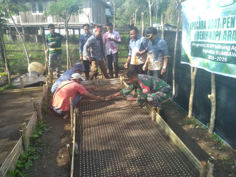 NTB — Sumbawa, Upaya pelestarian lingkungan sekaligus peningkatan kesejahteraan masyarakat kembali digalakkan melalui program CSR KPP Mining. Kali ini, kegiatan penyemaian benih kopi Arabika dilakukan di Lapang Merah, Desa Lawin, Kecamatan Ropang. Kamis (17/07/2025).