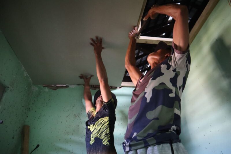 Proses pemasangan plafon dilakukan oleh anggota TNI bersama warga setempat, mencerminkan semangat gotong royong yang menjadi ciri khas pelaksanaan TMMD. Di tengah keterbatasan fasilitas dan medan kerja, kegiatan berlangsung lancar berkat kekompakan serta antusiasme masyarakat.