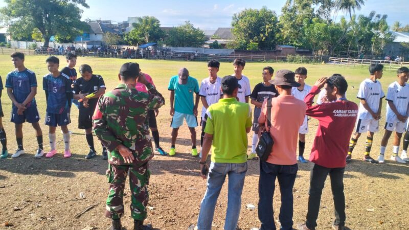 NTB – Sumbawa, Senin (4/8/2025) — Dalam rangka memeriahkan peringatan Hari Ulang Tahun ke-80 Kemerdekaan Republik Indonesia, Babinsa Desa Labuhan Jambu, **Serka Rudi Hartono** anggota Koramil 1607-02/Empang, menghadiri kegiatan **pembukaan pertandingan sepak bola mini** yang digelar di **Lapangan Dusun Labuhan Liang, Desa Labuhan Jambu, Kecamatan Tarano, Kabupaten Sumbawa**.