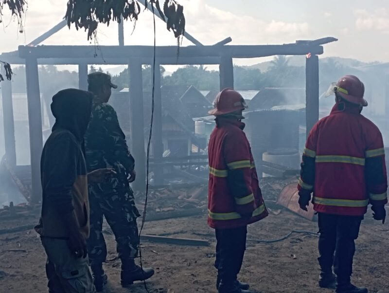 Sumbawa Besar|NTB — Musibah kebakaran melanda Dusun Boak Atas, Desa Boak, Kecamatan Unter Iwes, Kabupaten Sumbawa, pada Selasa pagi, 5 Agustus 2025, sekitar pukul 09.00 WITA. Insiden tragis ini menghanguskan empat unit rumah panggung dan menyebabkan dua rumah lainnya terdampak, dengan total kerugian diperkirakan mencapai setengah miliar rupiah.