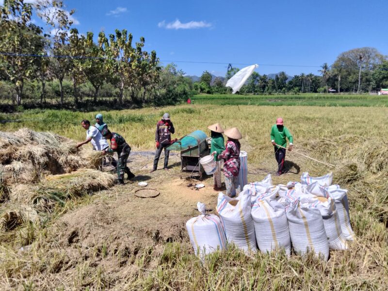 Dukung Petani Lokal, Babinsa Koptu Sukardin Ikut Panen di Desa Lape