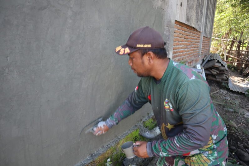 ‎Terlihat di lokasi, anggota Satgas TMMD ke-125 tengah melaksanakan tahap pengacian dinding sebagai bagian dari proses akhir pengerjaan. Usai tahap tersebut, mereka akan langsung melanjutkan dengan pemasangan keramik lantai.