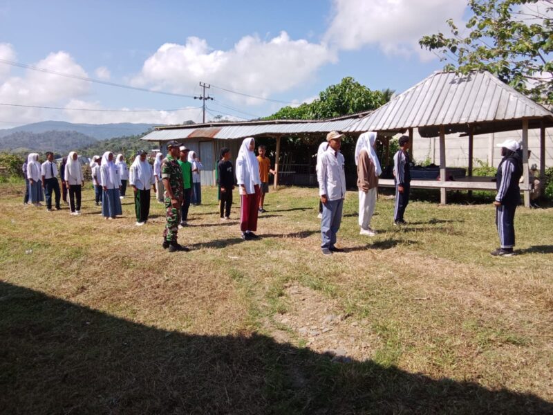 NTB – Sumbawa, Menjelang peringatan Hari Ulang Tahun Kemerdekaan Republik Indonesia ke-80, Danpos Ropang Serma Tangkas bersama Babinsa Ropang Koptu Yuda memberikan pelatihan Pasukan Pengibar Bendera (Paskibraka) sekaligus pembekalan wawasan kebangsaan kepada para pelajar SMA Negeri 1 Ropang. Kegiatan ini dilaksanakan di lapangan kantor Camat Ropang pada Senin (11/08/2025).