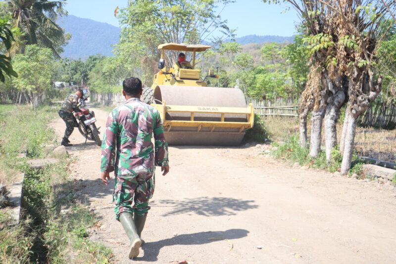 Sumbawa – NTB – Satuan Tugas TNI Manunggal Membangun Desa (TMMD) ke-125 Kodim 1607/Sumbawa terus memacu pengerjaan sasaran fisik di Desa Kalabeso, Kecamatan Buer. Salah satu pekerjaan penting yang dilakukan adalah perataan jalan usaha tani menggunakan alat berat road roller jenis SAKAI, Rabu (13/08/2025).