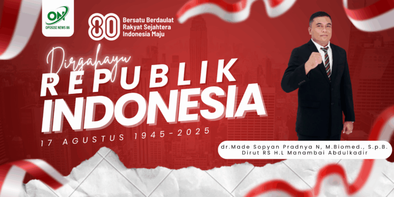 Sumbawa Besar|NTB, – Direktur RS H.L. Manambai Abdulkadir, dr. Made Sopyan Pradnya N, M.Biomed., Sp.B, mengucapkan selamat Dirgahayu Republik Indonesia ke-80.