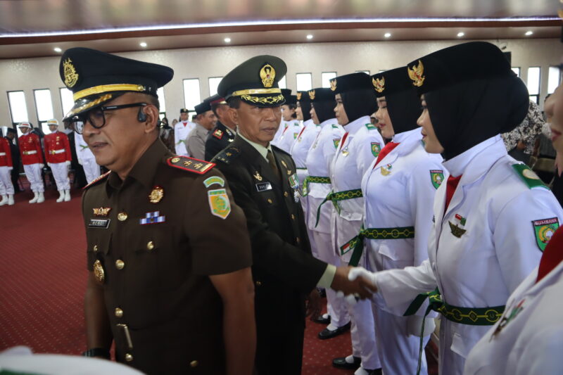 Sumbawa – NTB – Kasdim 1607/Sumbawa, Mayor Inf Dahlan, S.Sos., menghadiri acara Pengukuhan Pasukan Pengibar Bendera Pusaka (Paskibraka) Kabupaten Sumbawa Tahun 2025 yang digelar di Aula H. Madilaoe ADT, lantai III Kantor Bupati Sumbawa, Jumat (15/8/2025).