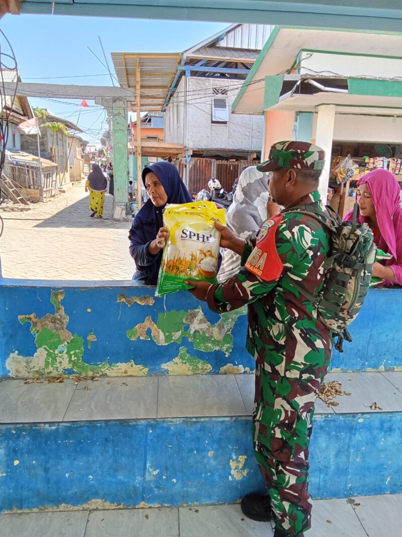 Sumbawa – NTB – Kodim 1607/Sumbawa melalui Koramil 1607-04/Alas bekerja sama dengan Bulog Sumbawa menggelar Gerakan Pangan Murah (GPM) di dua lokasi, yakni Dermaga Pelabuhan Pulau Bungin dan depan Makoramil 1607-04/Alas, Kecamatan Alas, Jumat (15/8/2025).