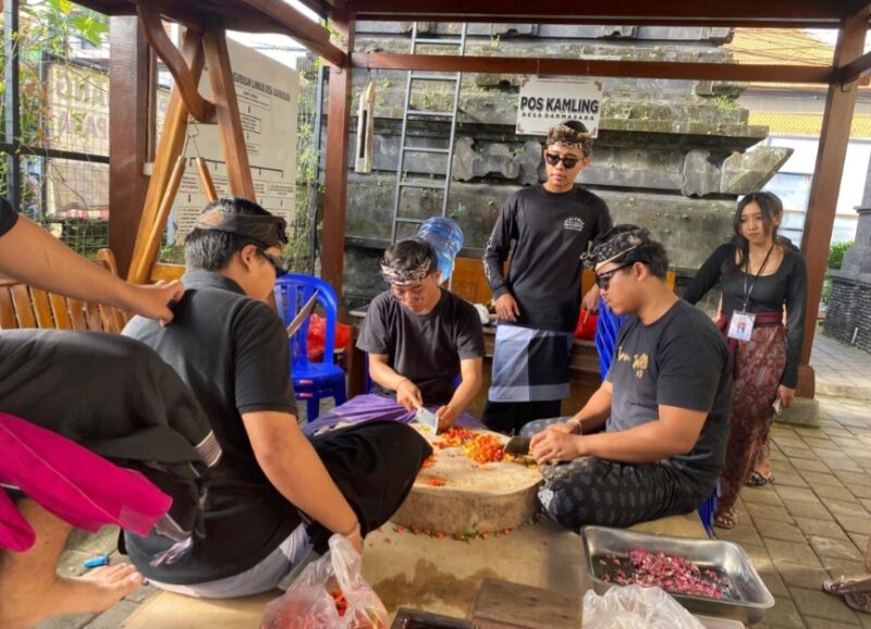 Oposisinews86.com-BADUNG | Mahasiswa Kuliah Kerja Nyata (KKN) Universitas Warmadewa (Unwar) Periode II Tahun 2025 turut serta dalam kegiatan persiapan piodalan di Kantor Desa Darmasaba.