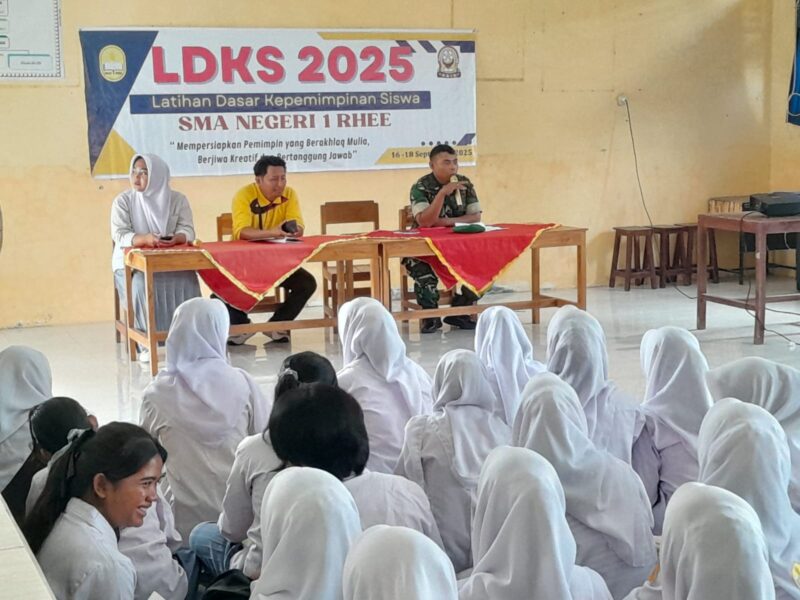 NTB – Sumbawa — Batituud Koramil 1607-09/Utan Rhee, Peltu Lispongoh, hadir sebagai narasumber pada kegiatan Latihan Kepemimpinan Dasar Siswa (LKDS) Tahun 2025 yang diselenggarakan di SMA Negeri 1 Rhee, Kecamatan Rhee, pada Selasa (16/09/2025).