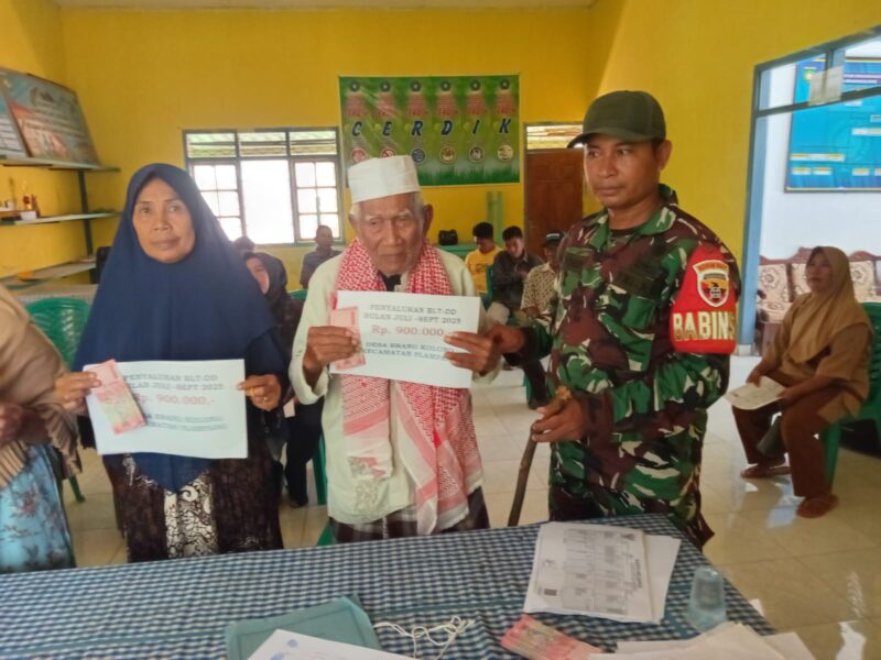 NTB – Sumbawa, Selasa (16/9/2025) — Babinsa Desa Brang Kolong, Sertu Muhamad Tohir, anggota Koramil 1607-02/Empang, melaksanakan pendampingan sekaligus pengamanan kegiatan penyaluran Bantuan Langsung Tunai Dana Desa (BLT-DD) tahap III tahun anggaran 2025. Kegiatan berlangsung di Aula Kantor Desa Brang Kolong, Kecamatan Plampang Kabupaten Sumbawa.