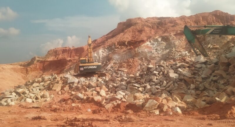 Pada Senin, (22/09/2025), pemandangan mengerikan terlihat di lokasi. Excavator breaker tanpa henti mengeruk bukit batu, menciptakan debu tebal yang beterbangan dan mengotori udara. Truk-truk besar hilir mudik, mengangkut material curian ini seolah tak ada hukum yang berlaku.