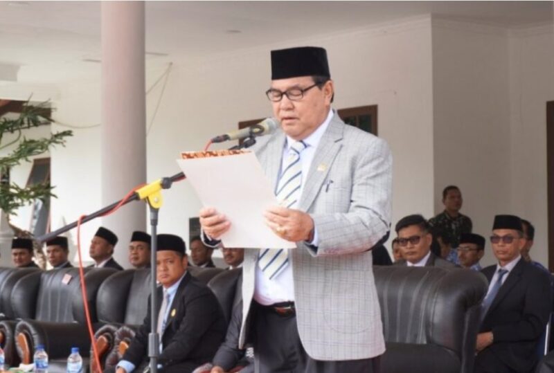 Ketua Dewan Perwakilan Rakyat Kabupaten ( DPRK) H. Ali Husin,SH, Saat membacakan naskah Ikrar, pada saat memperingati Hari Kesaktian Pancasila di Halaman Kantor Bupati Gayo Lues.
