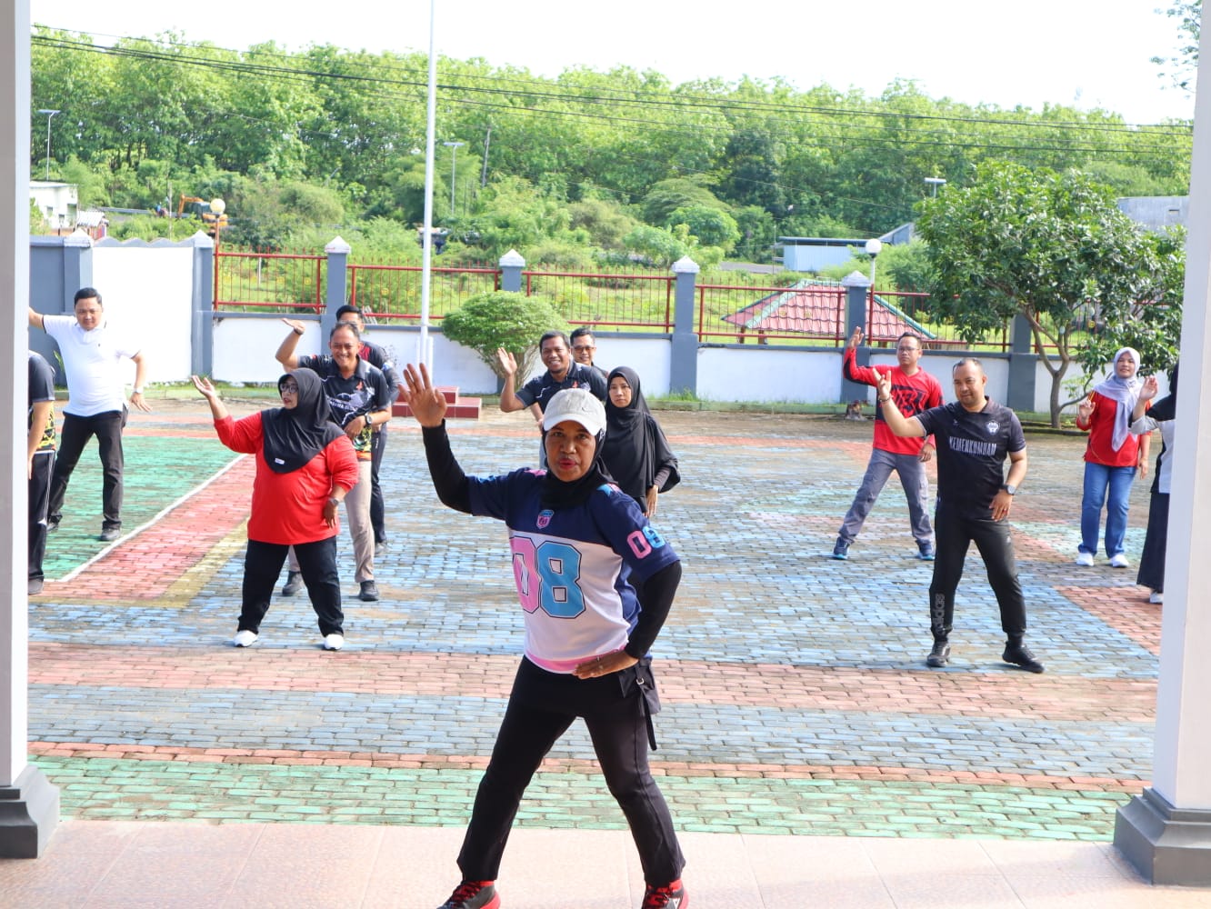 Usai apel, kegiatan dilanjutkan dengan senam bersama yang dipandu oleh instruktur profesional. Iringan musik yang energik dan gerakan dinamis membuat suasana pagi terasa penuh semangat dan keceriaan. Para pegawai tampak kompak mengikuti setiap gerakan senam, menciptakan nuansa kebersamaan yang hangat dan harmonis.