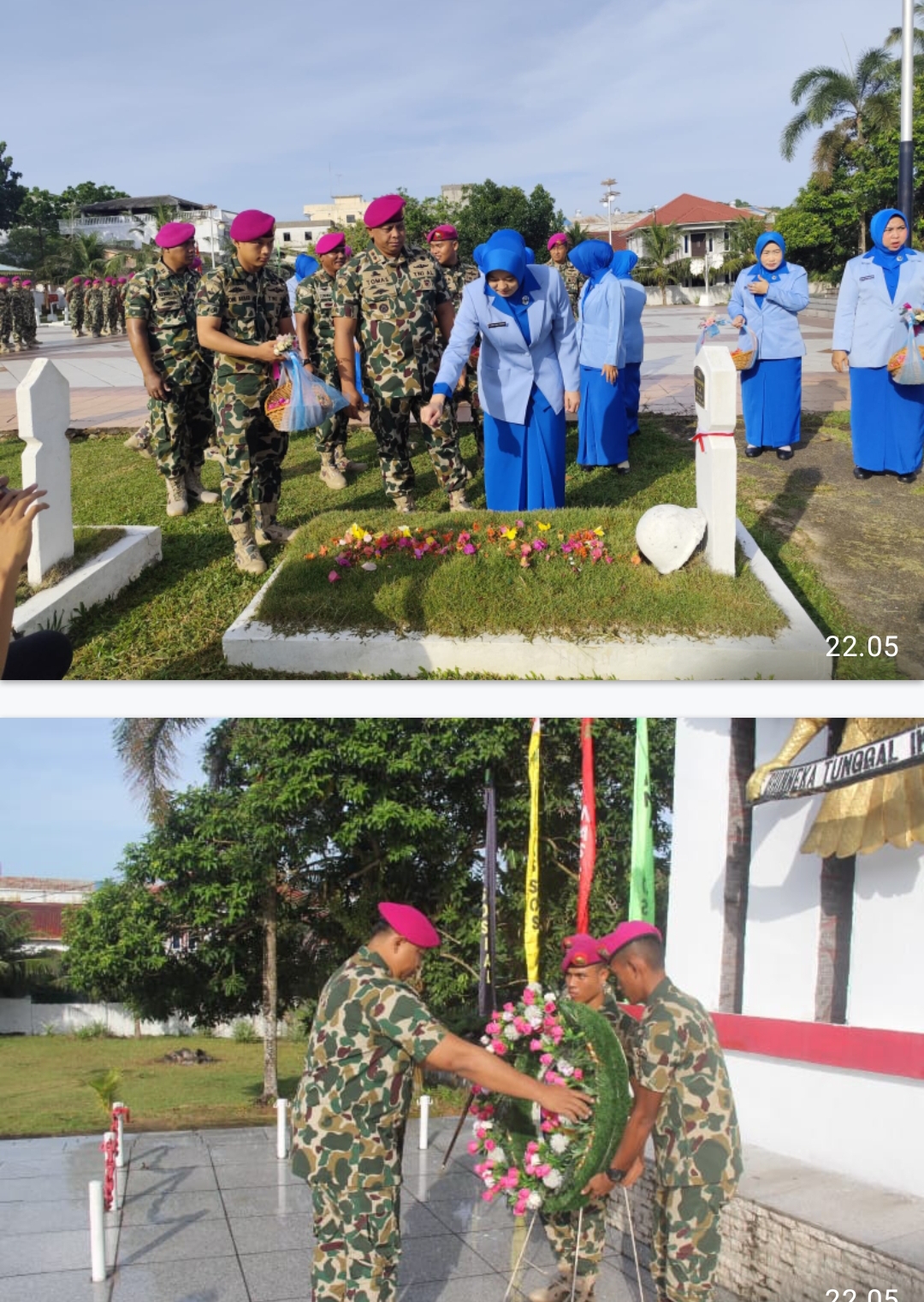 Batam/Kepri – Komandan Batalyon Marinir Pertahanan Pangkalan (Danyonmarhanlan) IV Batam Letkol Marinir Tomas Febrianto, M. Tr. Opsla beserta Ketua Ranting C Cabang 1 Korcab Pasmar 1 Gabungan Jalasenastri Korps Marinir Ny. Ummi Tomas Febrianto dan Pengurus Serta seluruh Prajurit Yonmarhanlan IV Batam melaksanakan kegiatan Ziarah Rombongan dan tabur bunga di Taman Makam Pahlawan (TMP) Pusara Bhakti Tanjung pinang , Jumat (07/11/2025).