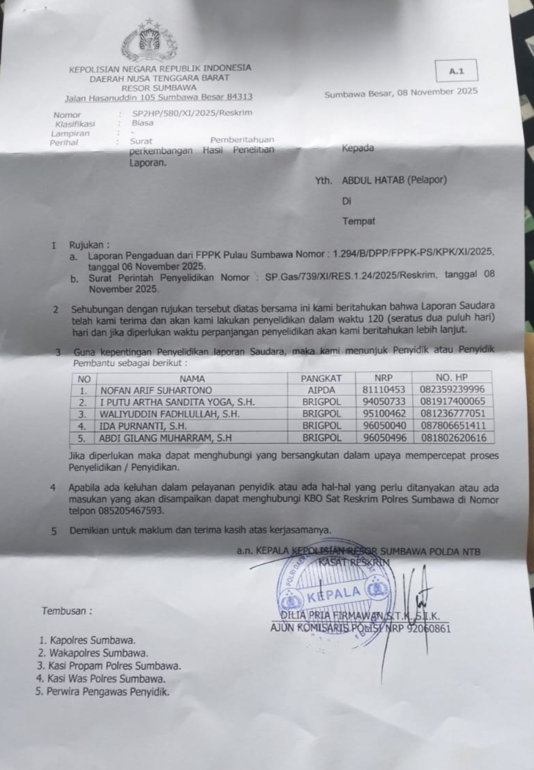 Bukti Laporan ketua umum FPPK Pulau Sumbawa, Abdul Hattab